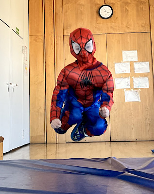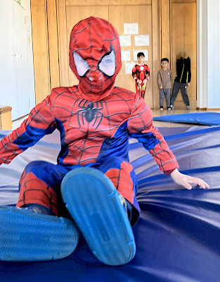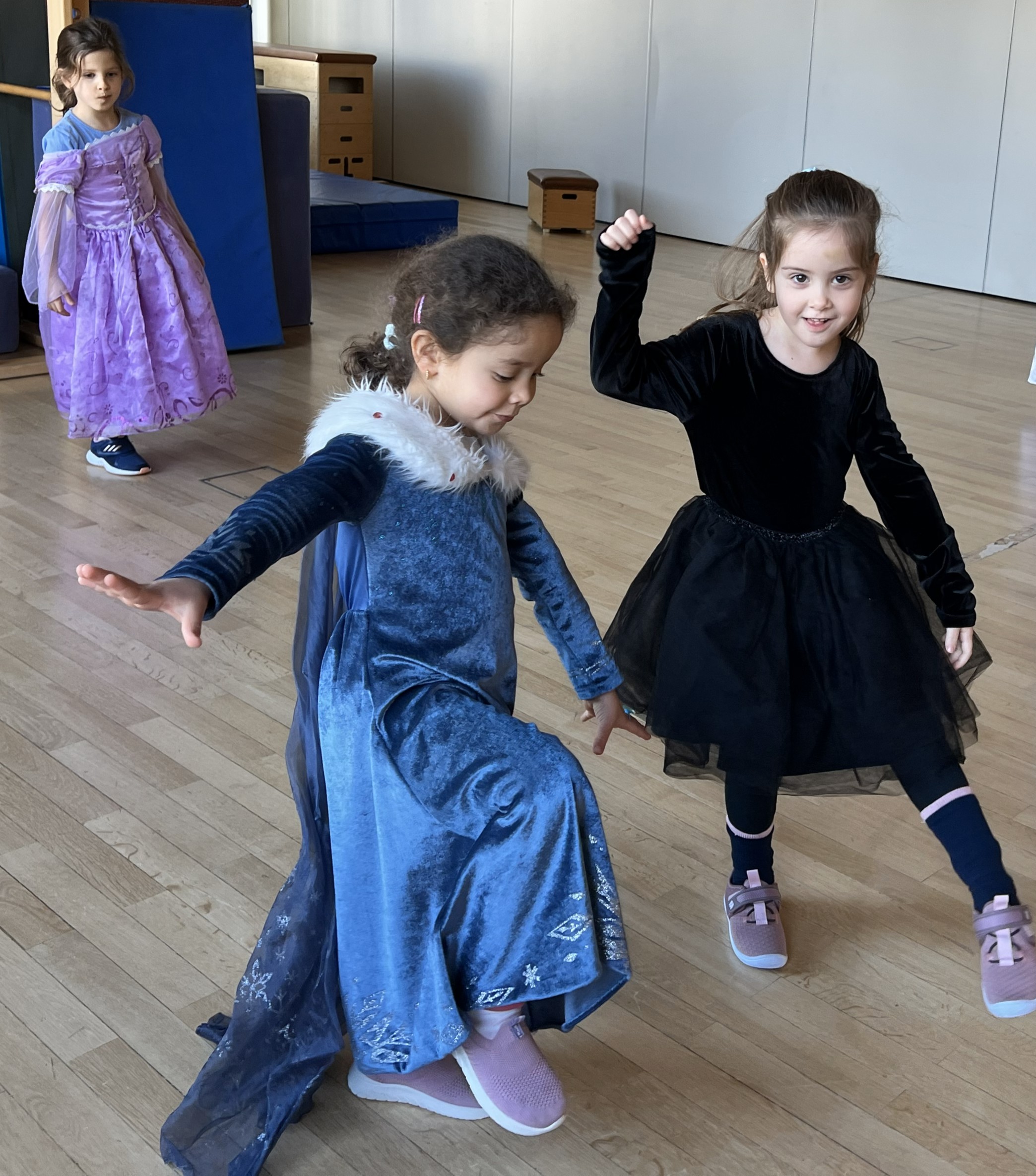 An einem Tag verwandelte sich die Turnhalle in eine Fantasiewelt voller Superheld*innen und Prinzess*innen. Die Kinder waren als Spiderman, Elsa und viele selbst erfundene Fantasiefiguren unterwegs. Alle durften sich verkleiden, wie sie wollten und falls sie wollten: Den Jungs wurden auch Kleider angeboten und den Mädchen Superheld*innenkostüme. Die Kinder entschieden sich ganz „klassisch“ – und hatten jede Menge Spaß.