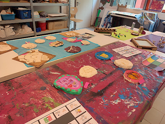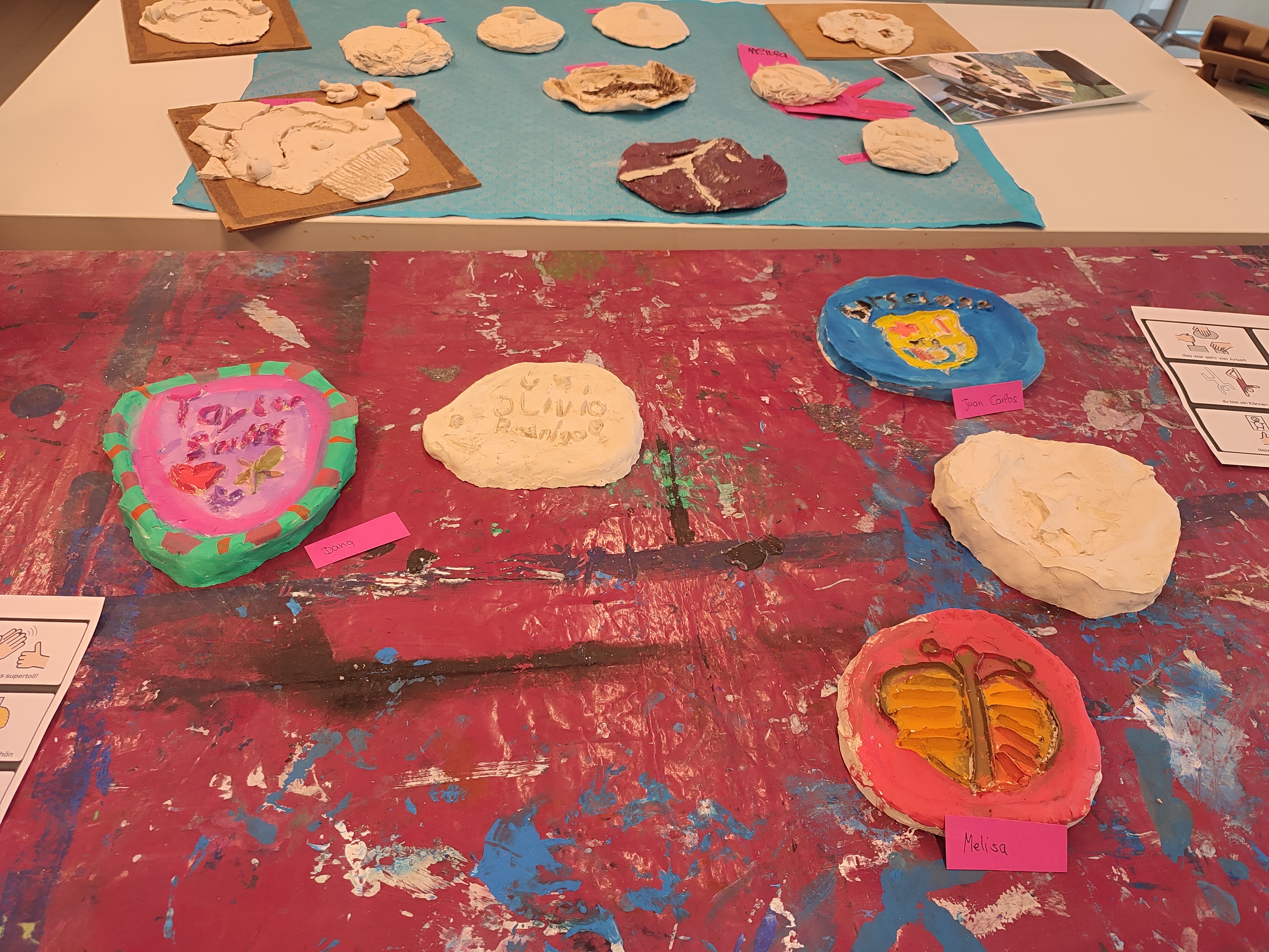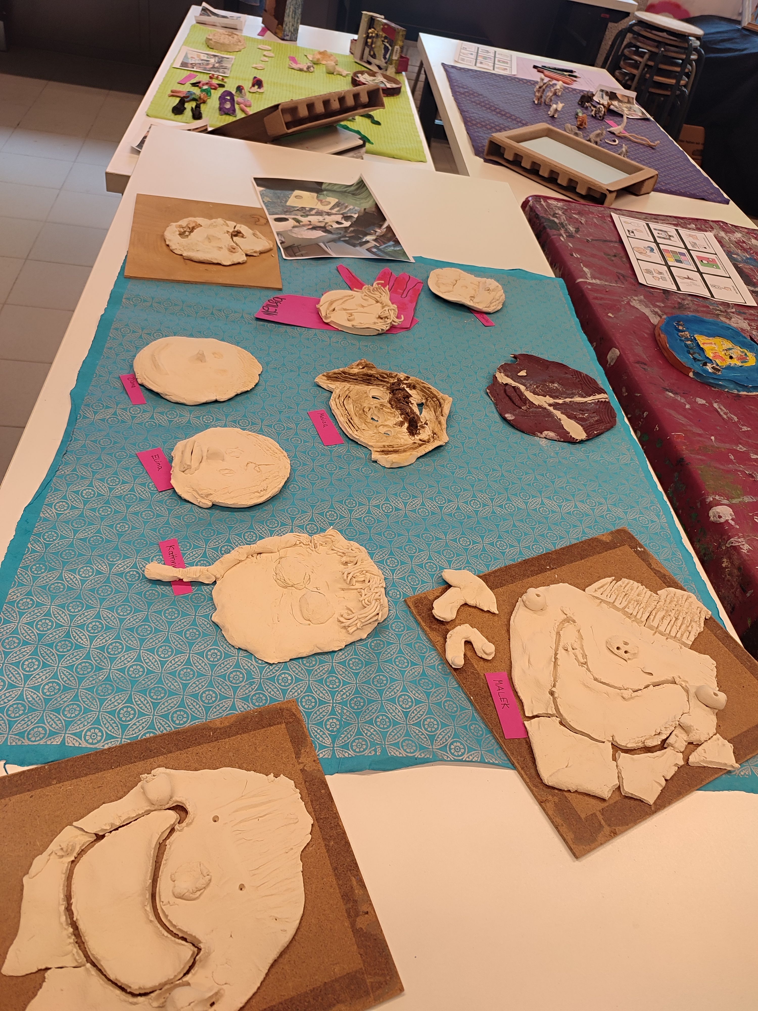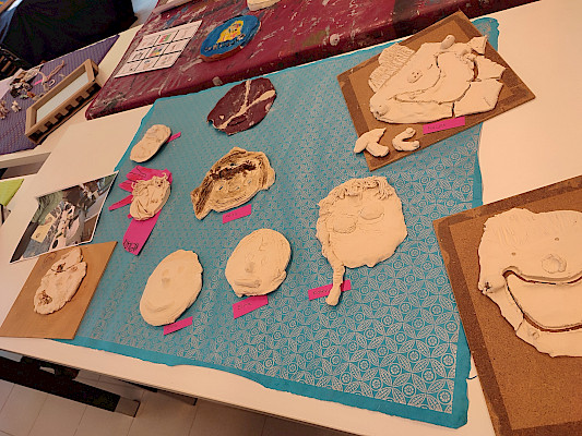 Kunstwerke aus Gips, die mithilfe von Ton gestaltet wurden.