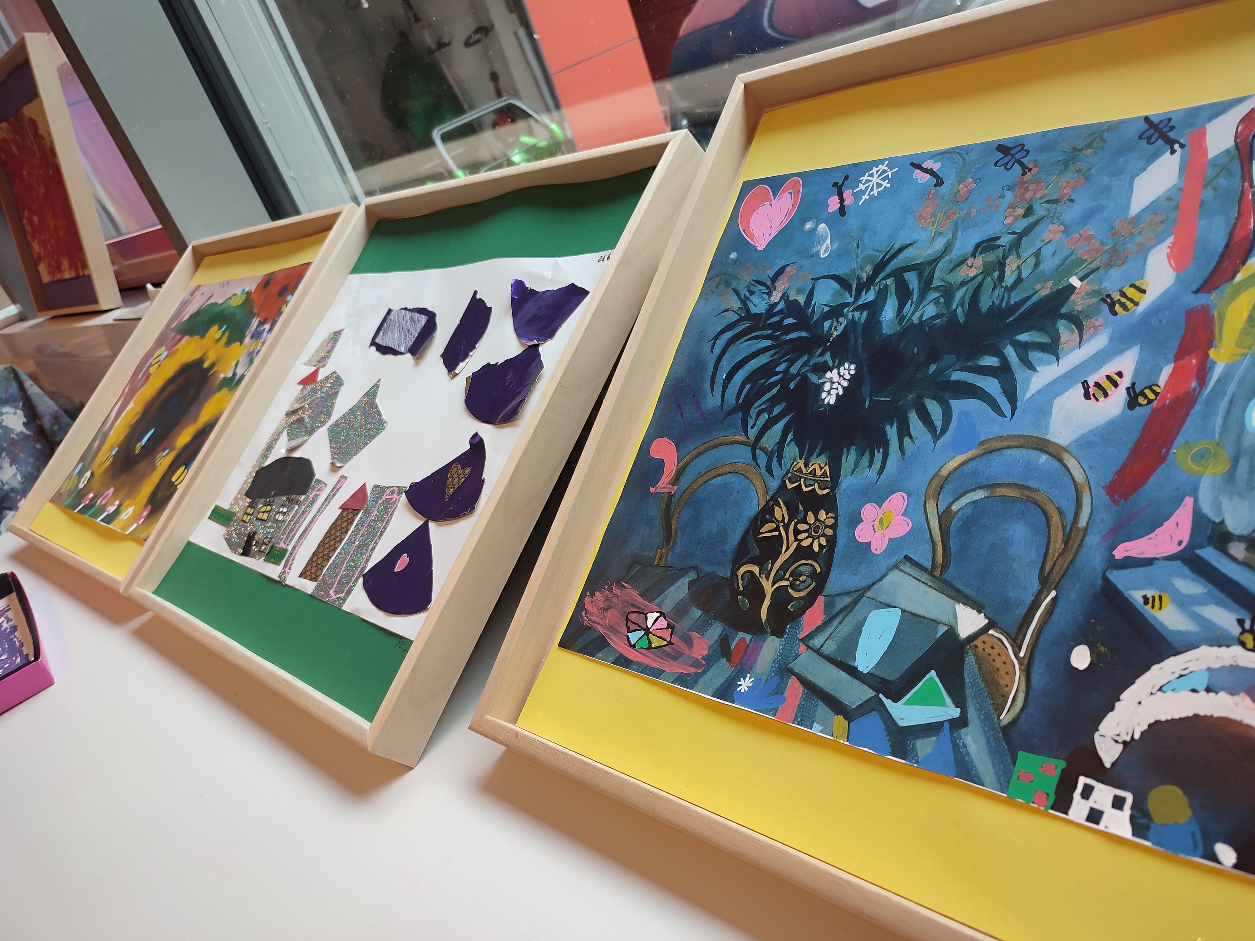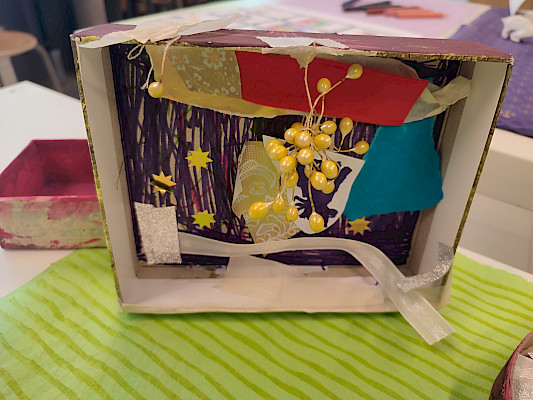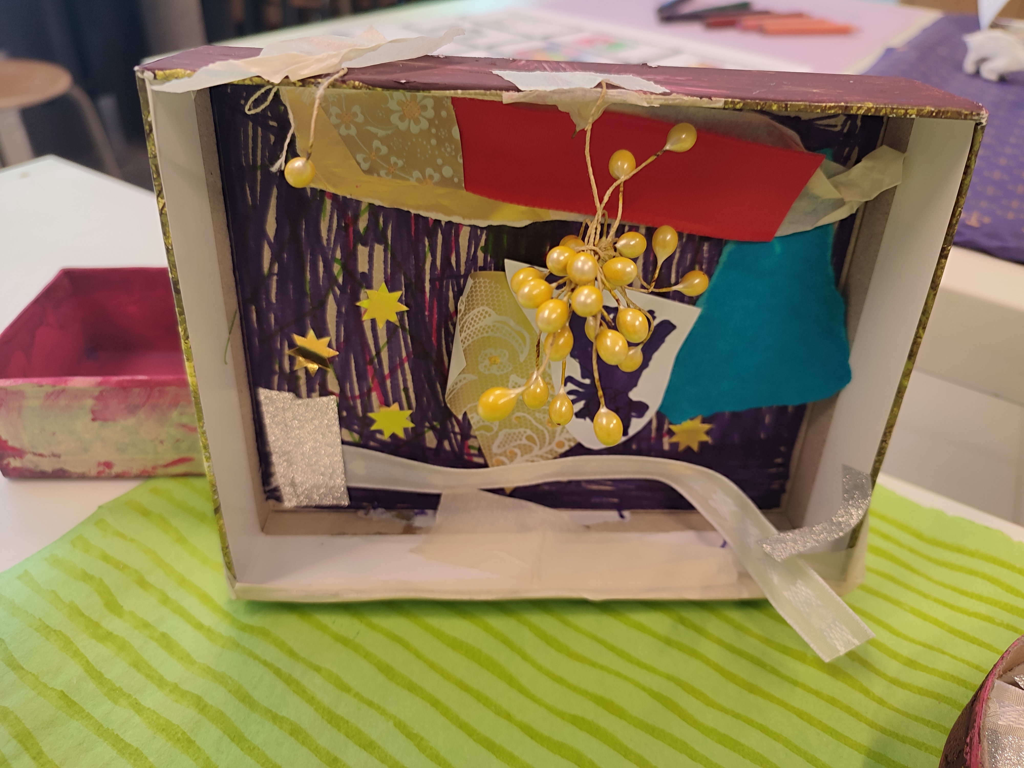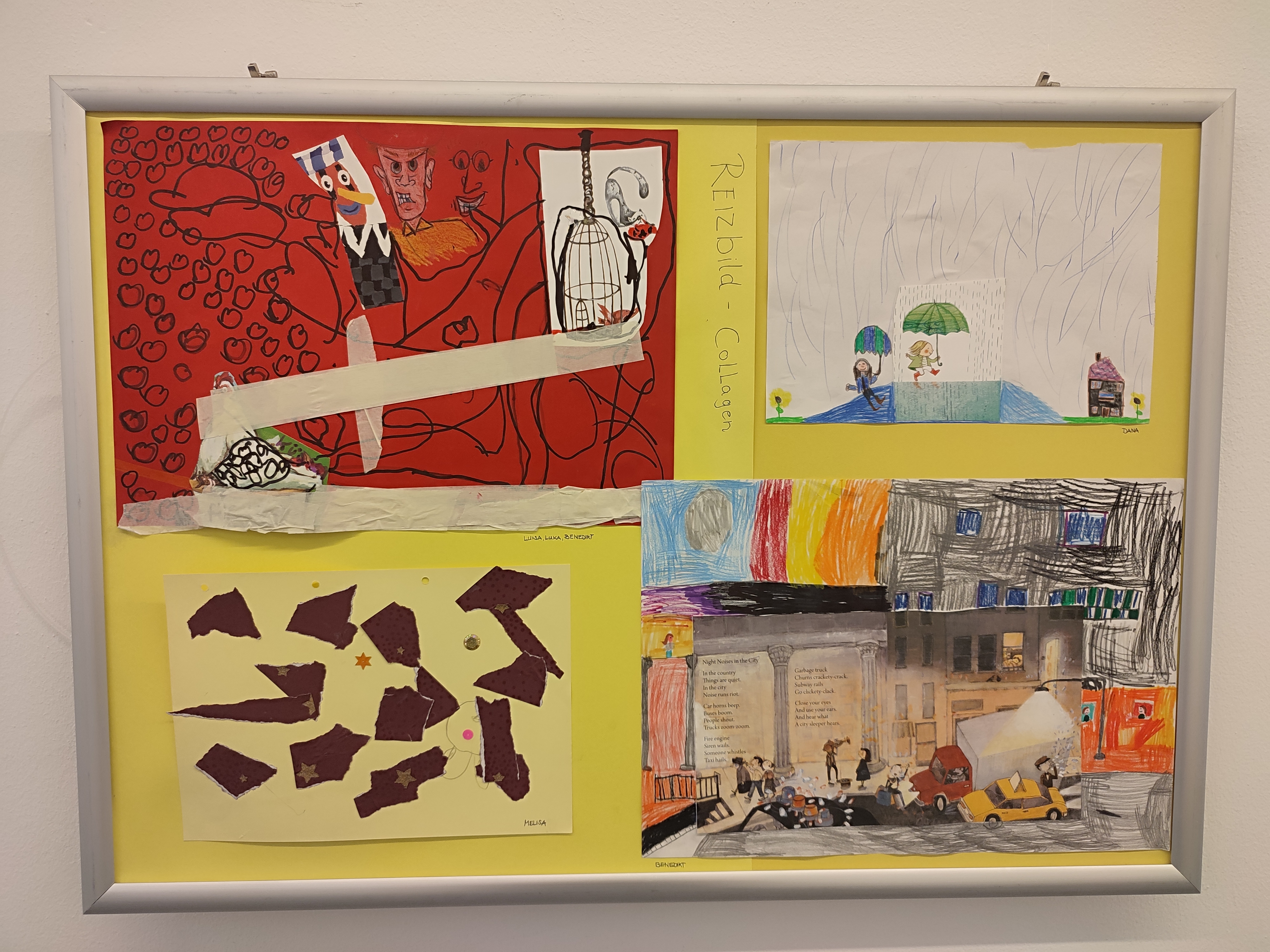Reizbild-Collagen haben ihren ganz eigenen Charme. Aber auch mit Acrylfarben und Druck wurde gearbeitet.