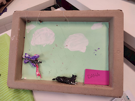 Auf Folie konnten die Schüler*innen ihre Konturen festhalten und diese dann ausmalen.