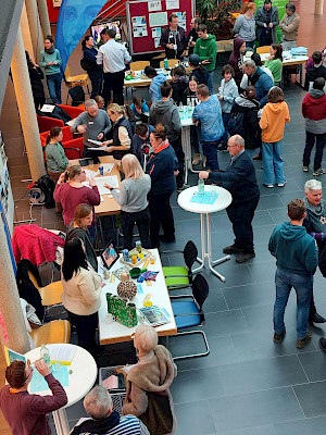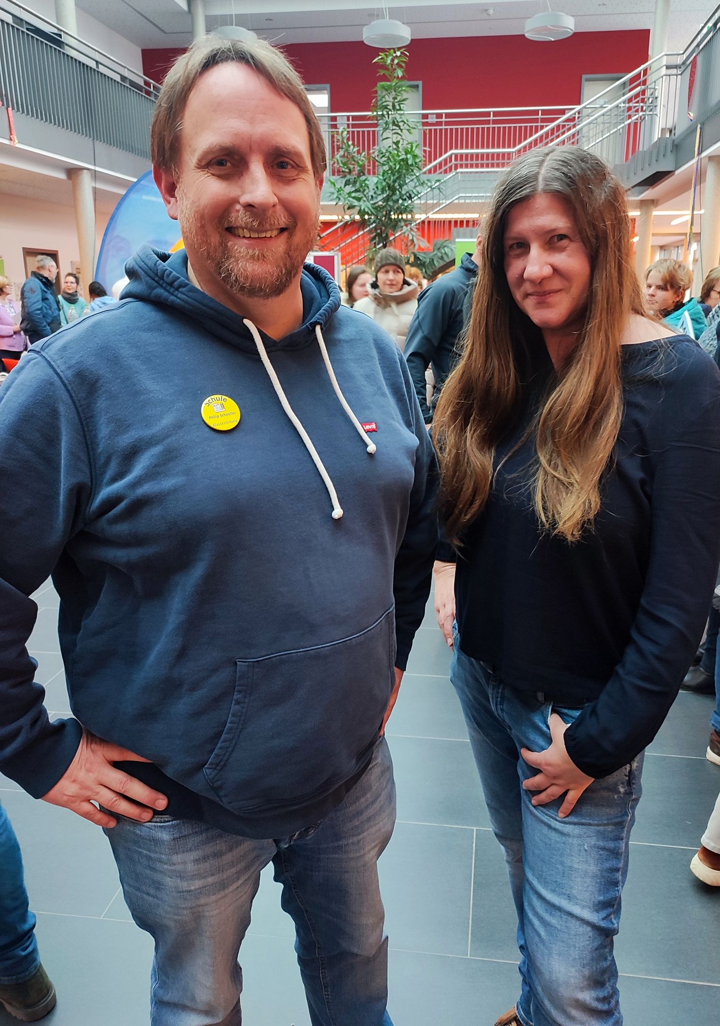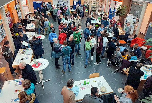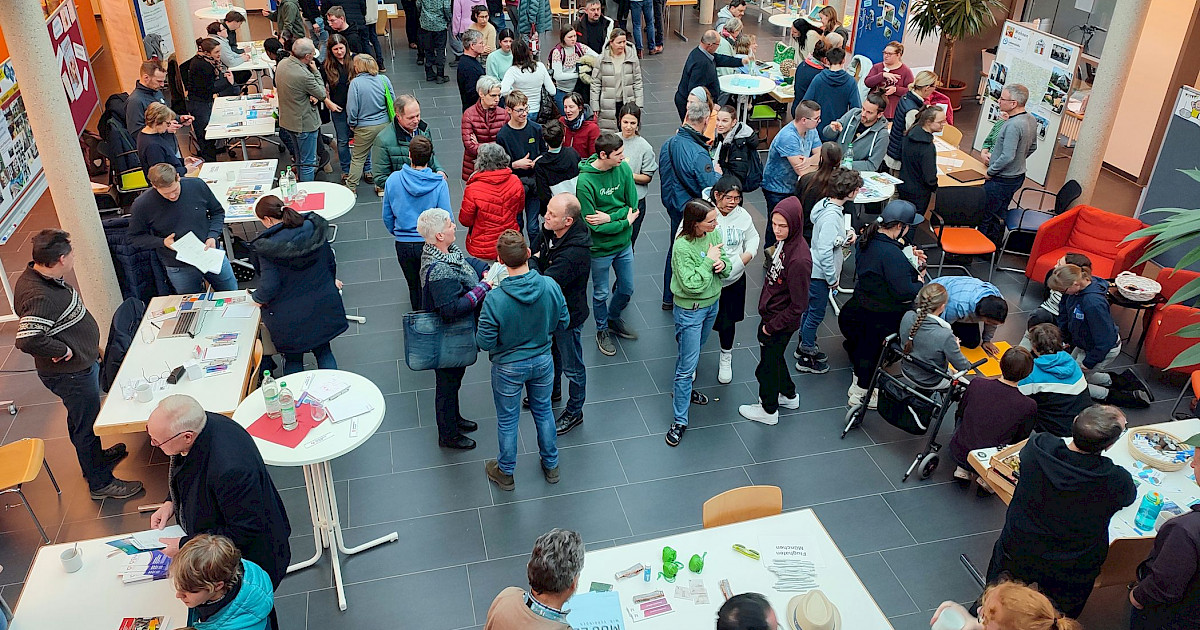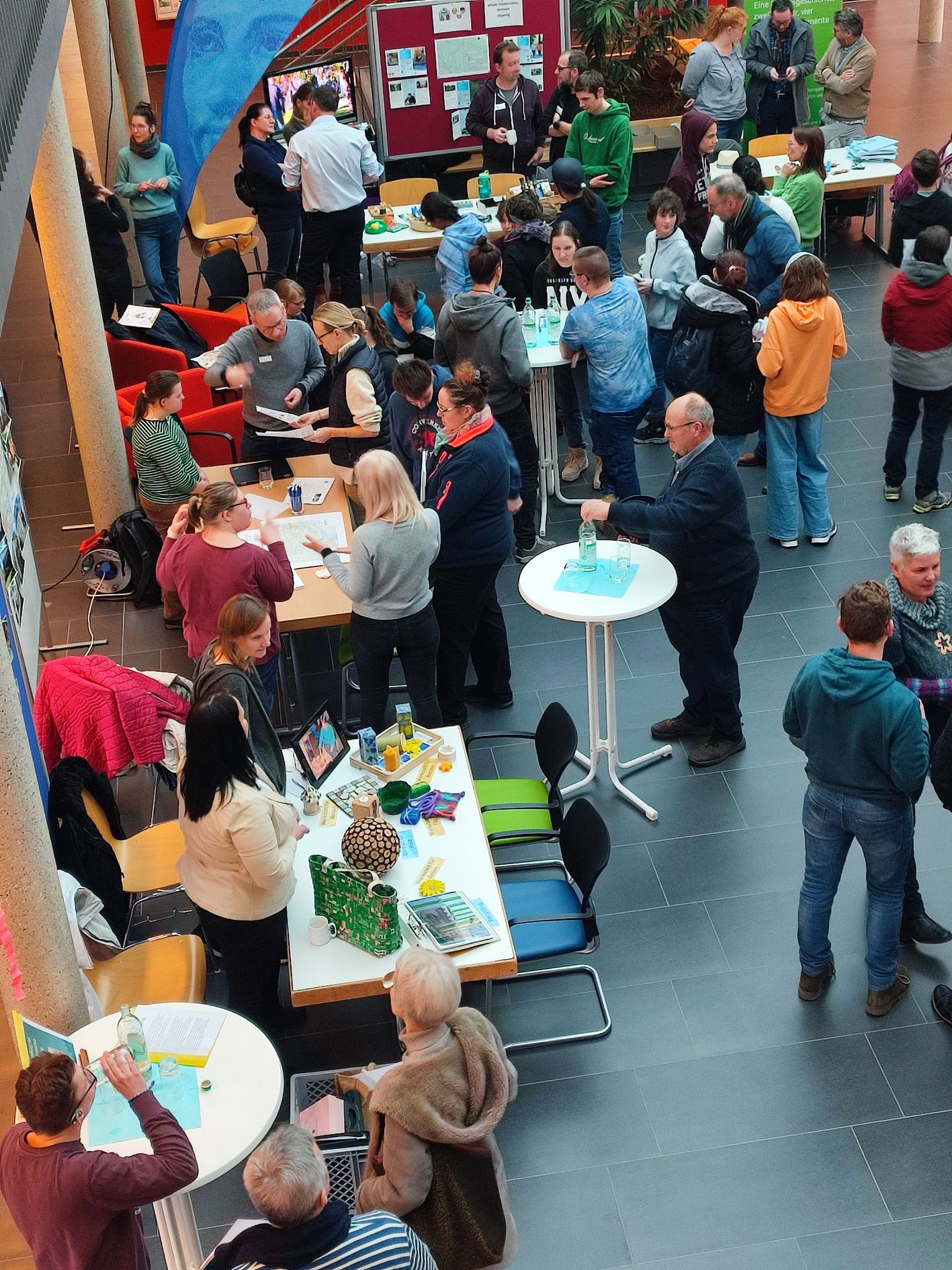 Den ganzen Nachmittag über herrschte in der Aula des BiGs Hochbetrieb, was Schöller und Hölzl außerordentlich freute. „Wir wollten hier aufzeigen, welche Möglichkeiten sich für unsere Jugendlichen mit Behinderung nach dem Ende ihrer Schullaufbahn bieten“, so Hölzl, die bereits seit 2002 die BSS leitet. „Natürlich ist da – wie bei Jugendlichen ohne Behinderung auch – viel Elternarbeit nötig, die sich mit ihren Sorgen, Wünschen und auch Fragen an uns und die Infostände wenden“, ergänzte Schöller, der seit 2010 für die BSS zuständig ist. Dementsprechend war das Alter der Besuchenden – von den Achtklässlern über die Erziehungsberechtigten und Lehrkräfte bis hin zu den Großeltern – bunt gemischt.