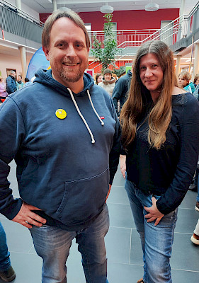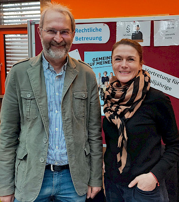 Während sich die Jugendlichen über verschiedene Themen rund um das Erwachsenwerden informierten, wurden sie dabei aktiv von den Stufenleitungen der Berufsschulstufe (BSS) aus dem Förderzentrum, Philip Schöller und Christine Hölzl, begleitet und unterstützt. Neben dem Thema Arbeit gab es, wie in den Jahren vor Corona auch, wieder Infostände zu den Themen Freizeit, Wohnen, gesetzliche Betreuung / Beratung und Zukunftsplanung: