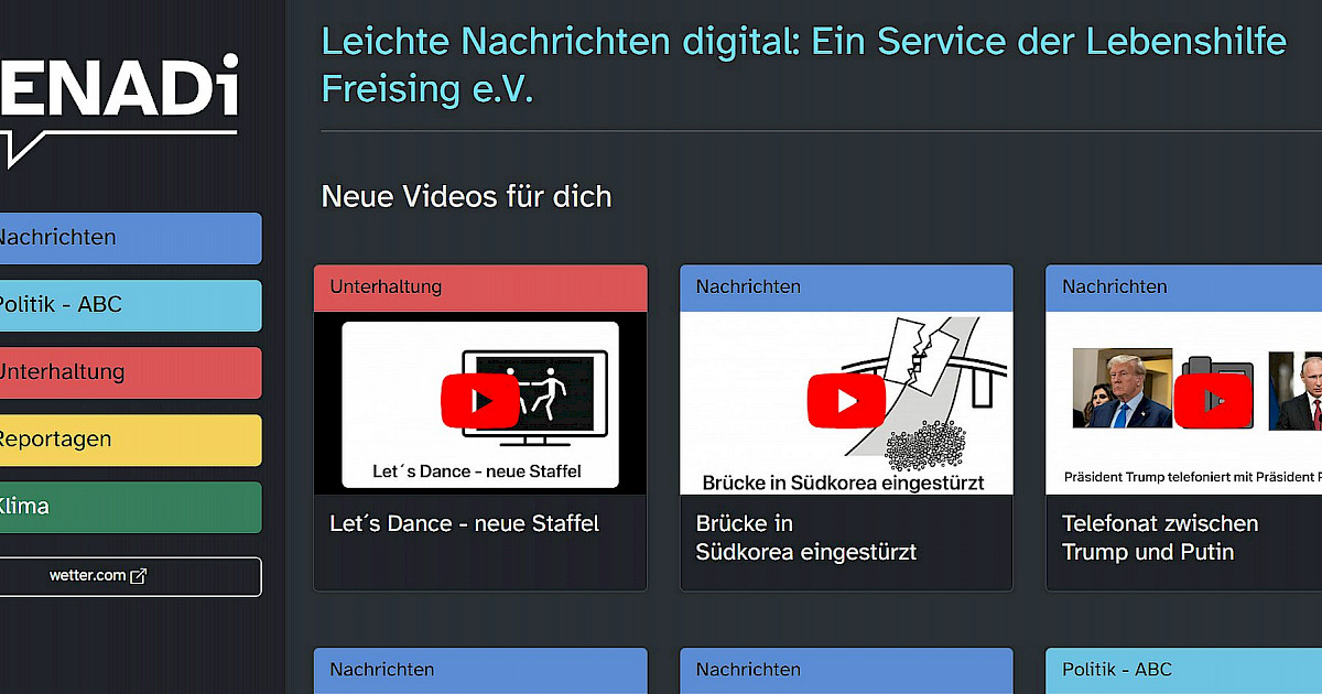 Die Auszeichnung mit dem Inklusionspreis des Bezirks Oberbayern Ende des letzten Jahres ist für das LENADI-Team mehr als nur eine Anerkennung – sie ist Rückenwind und Motivation zugleich. Mit dem mit 5.000 Euro dotierten ersten Platz würdigte der Bezirk die wegweisende Arbeit eines Projekts, das konsequent auf Teilhabe setzt und zeigt, wie Information inklusiv gedacht und gemacht werden kann. Möglich wurde dieser Erfolg nicht zuletzt durch die Förderung der Aktion Mensch, die das Projekt von Anfang an unterstützt hat. Dank dieser Hilfe konnte LENADI wachsen, professioneller werden und den nächsten Schritt wagen: den Aufbau einer eigenen barrierearmen Website. Ziel ist es, digitale Nachrichtenformate zu schaffen, die auf allen Geräten gleich intuitiv funktionieren – ob mit Sprachsteuerung, Symbolunterstützung oder angepasstem Layout. Eine echte Herausforderung, aber eine, die das Redaktionsteam mit Leidenschaft angeht. „Ohne Aktion Mensch wären wir heute nicht da, wo wir stehen“, betont Reicheneder. „Und ohne neue Partner wird unser Traum einer inklusiven Nachrichtenwelt nicht Wirklichkeit werden.“