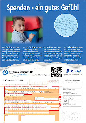 Per SEPA-Überweisung an die Stiftung Lebenshilfe Freising