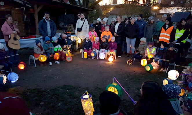 Mit Einbruch der Dunkelheit begann der sehnsüchtig erwartete Moment: Die Kinder zogen mit ihren selbstgebastelten Laternen in den Garten. Umgeben von den Lichtern der Eltern entstand eine stimmungsvolle Atmosphäre. Eine kleine Vorführung sowie ein Laternentanz sorgten für Begeisterung, bevor der gemeinsame Laternenzug startete.