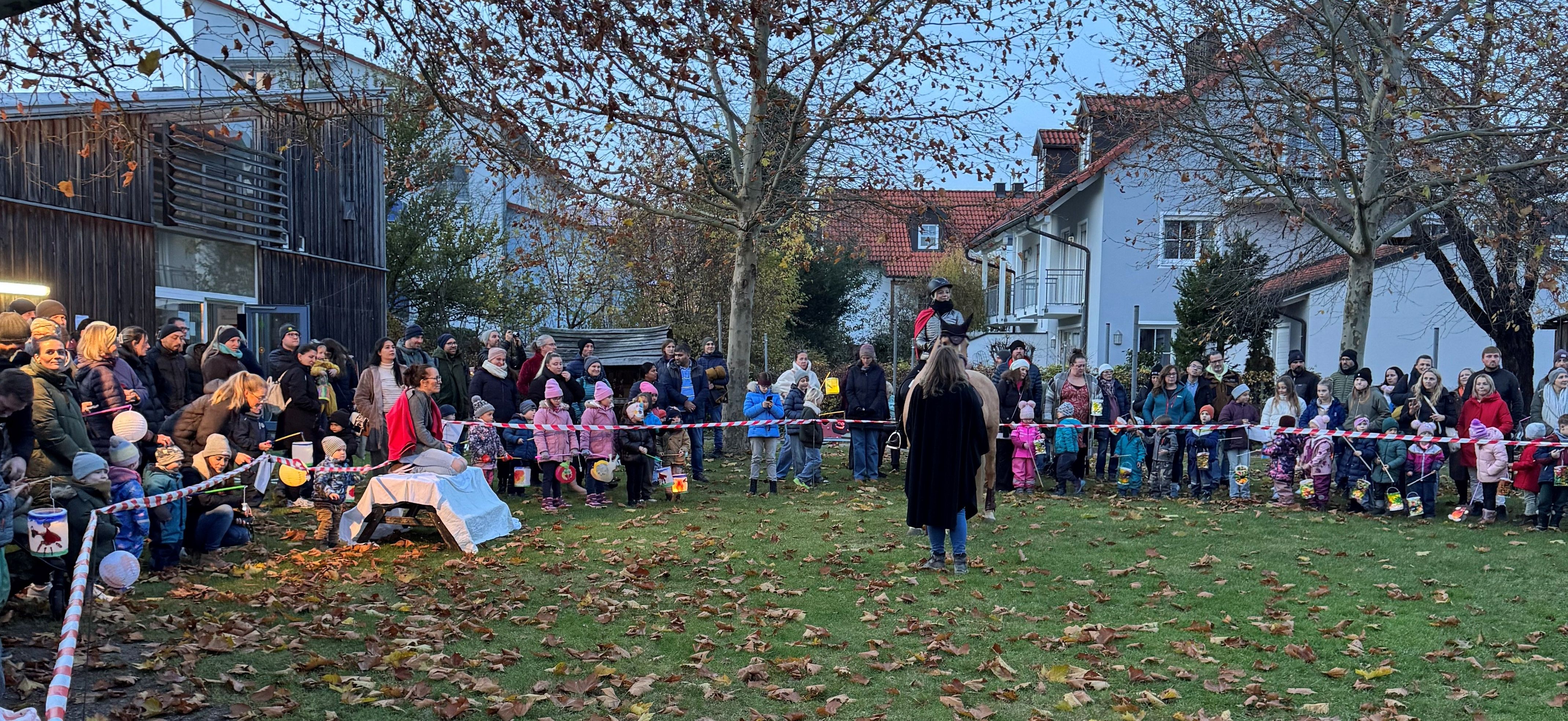 Der Abend startete mit einem Martinsspiel im Garten, das die Geschichte des heiligen Martin eindrucksvoll lebendig werden ließ. Anschließend zogen die Kinder mit ihren Familien und den selbstgebastelten Laternen durch die Straßen. Bunte Lichter, Martinslieder und fröhliche Kinderstimmen sorgten für eine besondere Stimmung.