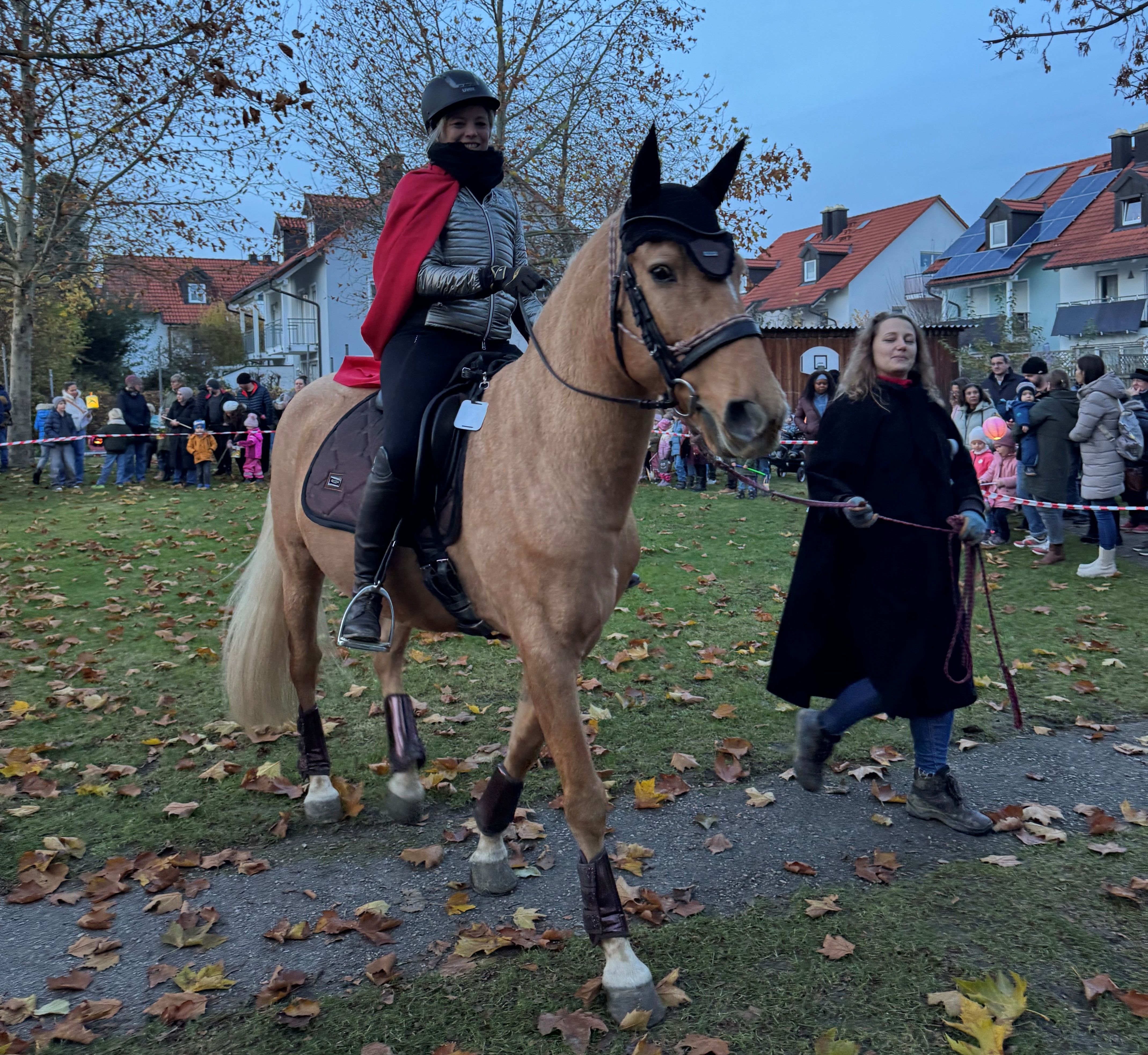 Ein unvergesslicher Höhepunkt war das echte Pferd samt Reiterin, die als St. Martin den Zug anführte – ein Bild, das bei den Kindern bis heute nachwirkt.
