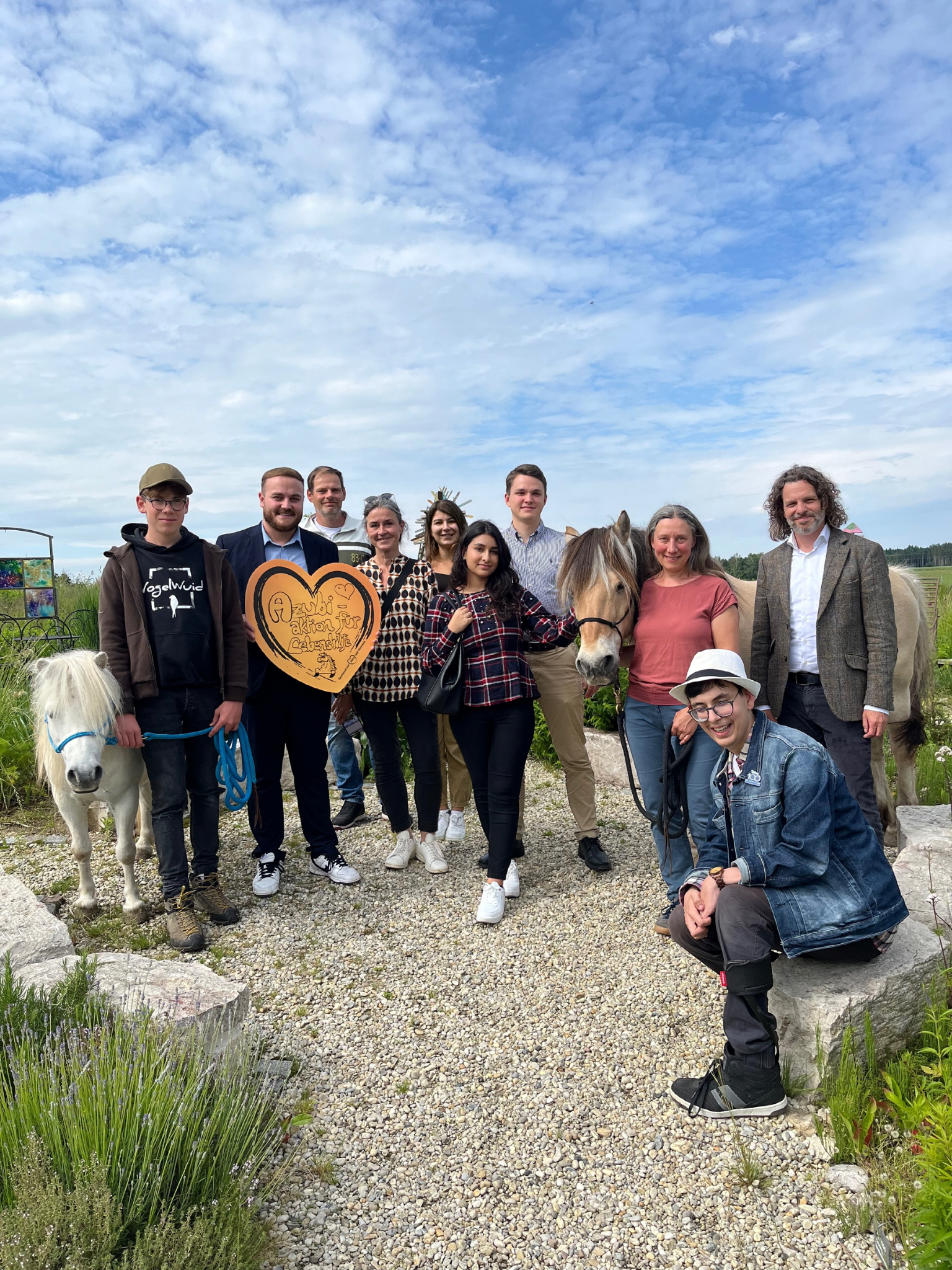 Für die offizielle Spendenübergabe trafen sich Schüler*innen der Abschlussklasse, sowie das Azubiprojektteam mit Referentin für Öffentlichkeitsarbeit Eva Prehm (Freisinger Bank), Petra Wegener - Fundraising, Cindy Funk – Reittherapeutin, Martin Brandl – Heilerziehungspfleger und Johannes Reicheneder - Geschäftsführer (Lebenshilfe Freising)