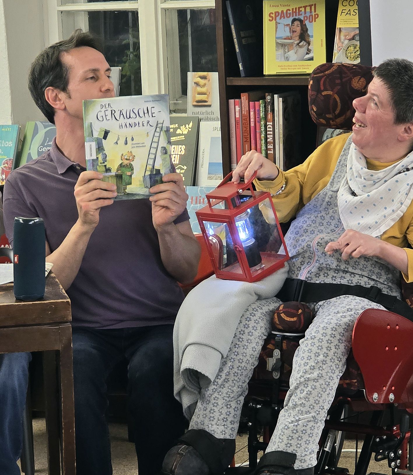 Ein weiterer Höhepunkt war der Vortrag des Teams der Bücherstube, das mit lebendig gestalteten Illustrationen aus dem Bilderbuch „Heute hat das Aquarium geschlossen“ das Publikum in eine fantasievolle Welt entführte. Musikalisch umrahmt wurde der inklusive Leseabend von der Gruppe „Auf d’Sait’n“, die mit mitreißenden Liedern und Instrumentalstücken für beste Stimmung sorgte.