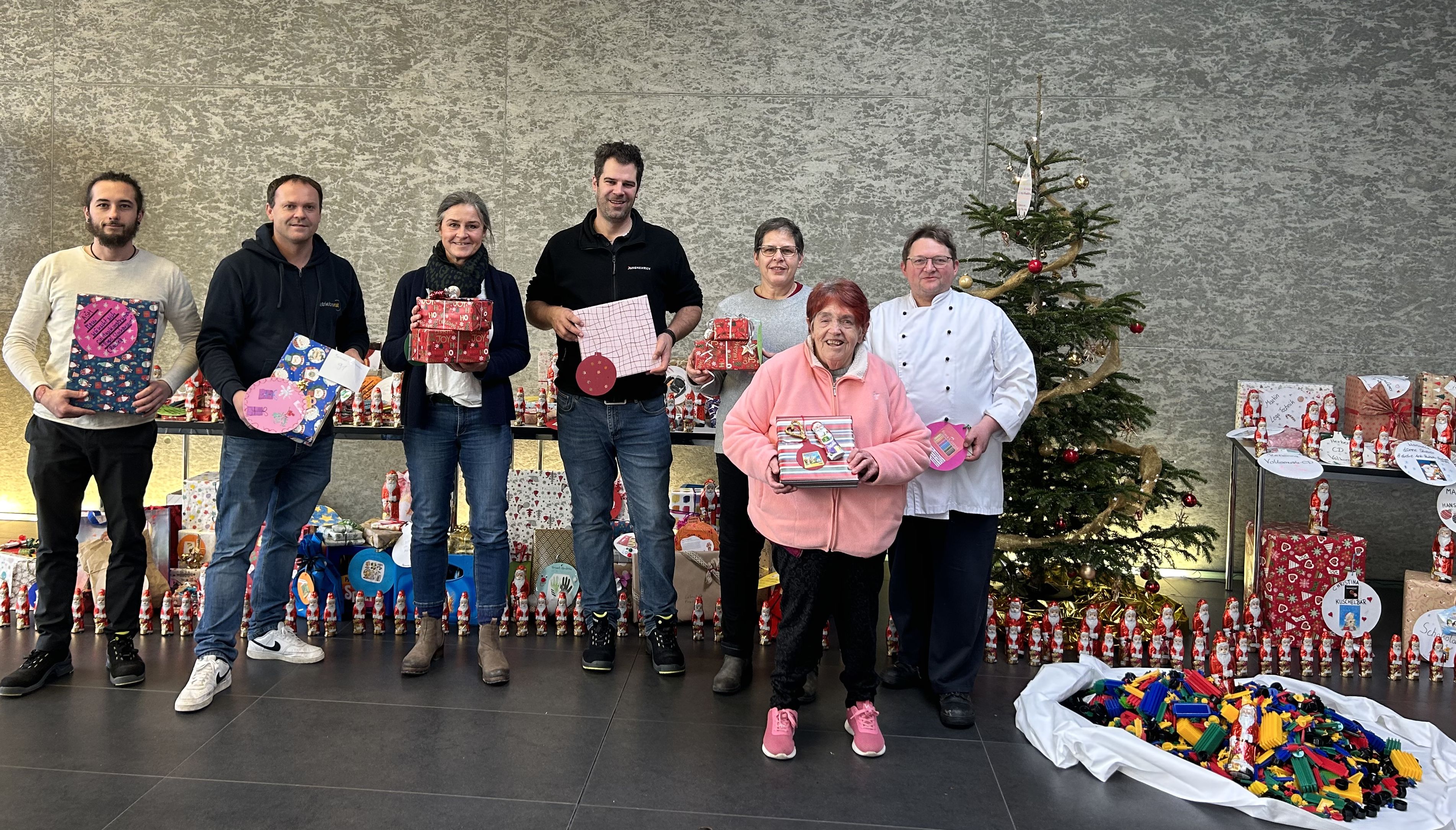 Auf den Wunschzetteln der Klient*innen aus den Frühförderungen Freising und Moosburg, dem Anneliese-Schweinberger-Haus und dem Juliane-Maier-Haus sowie dem Hermann-Altmann-Haus, aus der Offenen Behindertenarbeit und der Heilpädagogischen Tagesstätte standen je nach Altersstufen Dinge wie Puppenhaus- oder Kaufladenzubehör, Malstifte, Tonie-Figuren oder ein ferngesteuertes Auto, aber auch zahlreiche Musik-CDs, Schmuck, ein Träger Spezi, Pfeifentabak, Kleidung, Lego Technik, Puppen und Kuscheltiere sowie ein Kalender mit schönen Frauen, um nur einige zu nennen. Alle diese Wünsche, die auf Papierkugeln in den großen Christbaum bei Jungheinrich gehängt und dort direkt von den Mitarbeitenden ausgewählt wurden, wurden im Vorfeld liebevoll verpackt und am 20. Dezember an eine Vertretung der Lebenshilfe Freising übergeben.
