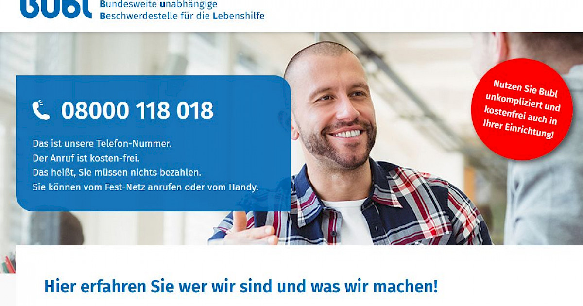 Die bundesweite unabhängige Beschwerdestelle für die Lebenshilfe ist unter der Nummer 08000 / 118 018 oder der E-Mail-Adresse info@bubl.de zu erreichen.
